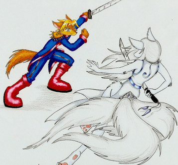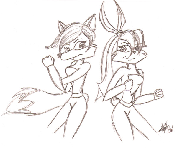 Rouge the Bat and Azami the Kitsune. Might color it, might not. Wish I had/knew how to use Photoshop, I'd make the moon all gloooooowyyy. Ah well.Related content