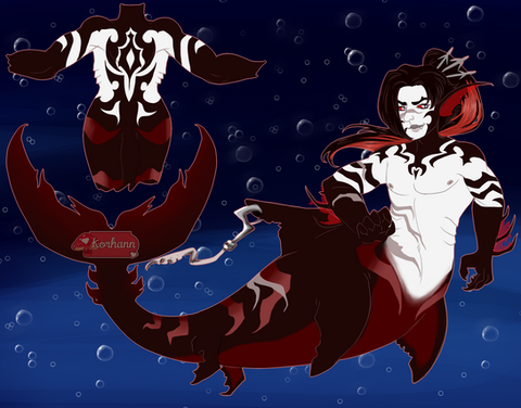 I love how you've managed to make each design so perfectly distinct from each other, and again your choice of mer-component is inspired. Β My favortie thing this time, though, are the colors; that stark red/dark-gray color scheme is just so immediately and powerfully arresting, visually, and it's really well-rendered to boot. Β Add on top of that Nerion's fantasticallyΒ handled build (you can just feel power radiating off of him) and the great thought and detail you put into his scars and torn fins, ad you've got a real winner.