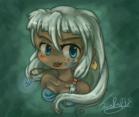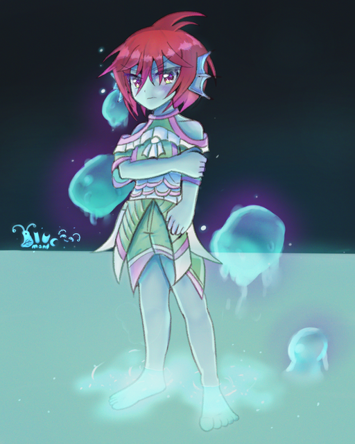 Again, I am fascinated by what you're doing with the new tablet here.Β I do see what you mean about the foreshortening, though it only really sticks out to me on the fingers of the right hand, but otherwise this is REALLY good; the lines have that same controlled, compelling quality to them I mentioned before, and the greater degree of depth and detail in the coloring (already a strong suit of yours) likewise continues to impress, especially the almost-water-like texture of the hair.