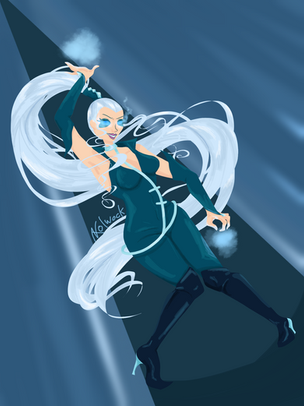 Great drawing of Storm! Love the colors and backround! This is nice and different!