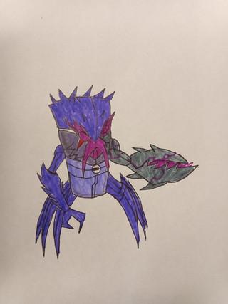 [ Character Description]Psychobos, an enhanced Cerebrocrustacean criminal from the stormy metropolis of Encephalonus IV.