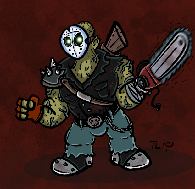 A happy-faced slasher-type goon drawn for my brother. Took about an hour to complete altogether.Related content