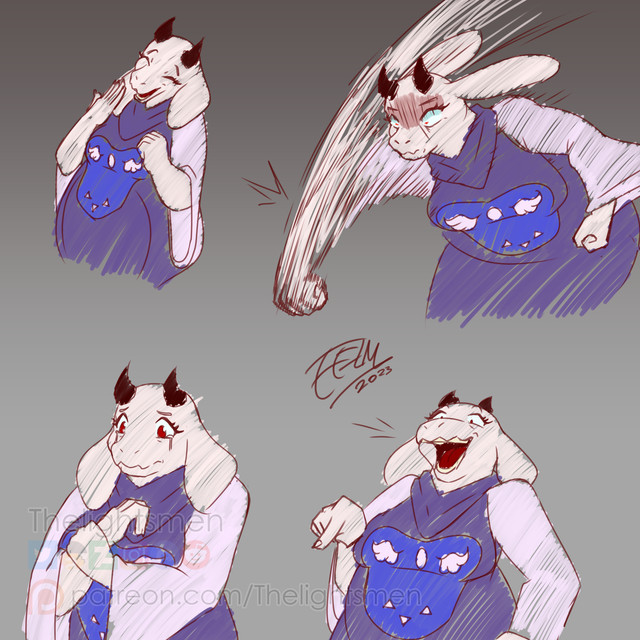 that's not how I pictured Toriel. I see her as more of a BBW, but that's just me.Β that's the best part of Toriel's design, you can imagine what ever you want.Β I can see her as ripped.