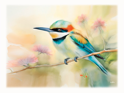 #animal #bird #wildlife #digitalart #portrait #digitalpainting #forest #watercolour #aquarell #aquarelle #watercolorart #watercolorpainting #watercolourpainting #aquarellepainting #aquarelleart #bee_eater #european_bee_eater #ai_generated_art #ai_artwork #synthography #synthographyart #draw_things