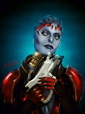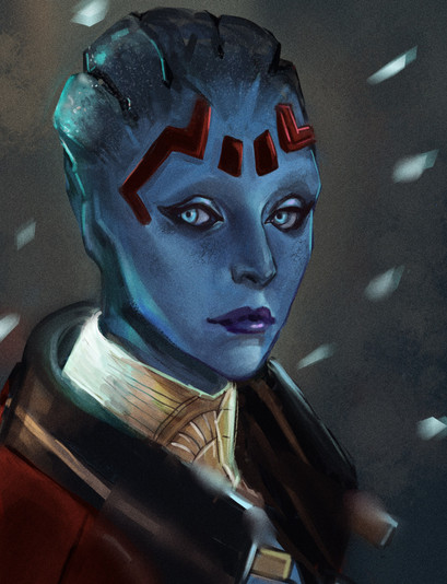 Some people have made comments saying that they think Samara looks disappointed, as if the viewer has done something wrong.Β I think she looks sad.Β I can see it in her eyes.Β There's a blizzard behind them.Β Samara is such a tragic figure and she's endured terrible loss.Β That's why she's my favorite ME character.