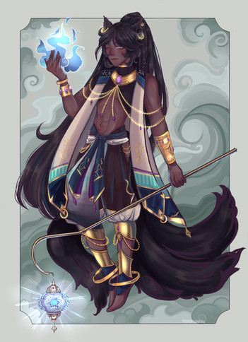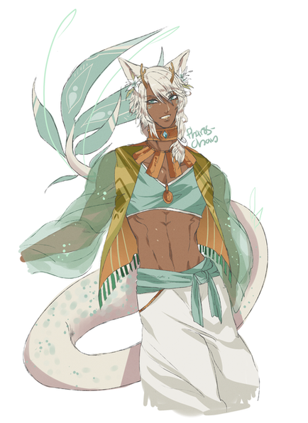 #characterart #characterdesign #coloredsketch #crystal #fantasy #fantasycharacter #fantasyillustration #fullbody #ice #longtail #magic #malecharacter #originalcharacter #whitehair #kemonomimi #tannedskin #kemonomimiboy #arabian