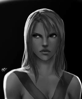 Just a seriously awesome picture! Love her defiant yet thoughtful look, and her wind-tossed hair! Would love to see this in colour too.