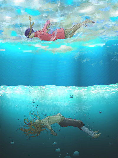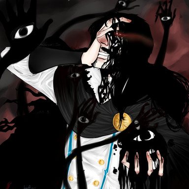 I like hiw it symbolizes what he went through in the games... Is he drowning in a river if insanity and failure???