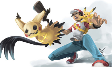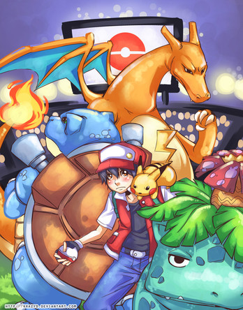It seems to me like Red just caught Mewtwo and tries to train him but he has a hard time controlling his temper.