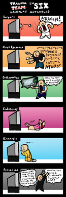 I present to you, Code Trauma, an idea I've have for a few years, actually, but never got around to posting onto dA. But first (second?), a summary:It was supposed to be a simple trip to France for a month-long hospital exchange program. "Supposed to", however, isn't enough, as Erhard and the rest of the Trauma Team are slowly dragged into a government project researching and recreating Franz Hopper's final creation, the virtual world of Lyoko. The stakes quickly pile up, though, when a powerful and malicious A.I. called X.A.N.A. enters the equation and begins wreaking havoc. But what are its goals? How did it infiltrate New Lyoko? And can the team even survive when the fight goes from the operating room to the digital world?