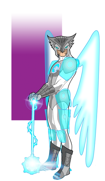 I'm definitely on the same page as you when it comes to Carter Hall. He's always been one of my favorite characters in comics and I would love to see him treated with a greater level of reverence. I really like the accessories you've put on him. The belts and pouches look great. Also a big fan of the gauntlets you've designed and the Thanagarian power mace is just awesome. Your color scheme is nice, and keeps with the established character (though I've always wished DC would give him either black or brown pants permanantly, just makes more sense to me)