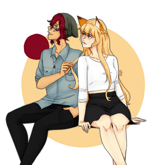 Commissioned by !She commissioned for a couple sketch of her OC, Natasha with her friend's OC, Izzy~ I think they are so cute together (。・ω・。)ノ♡