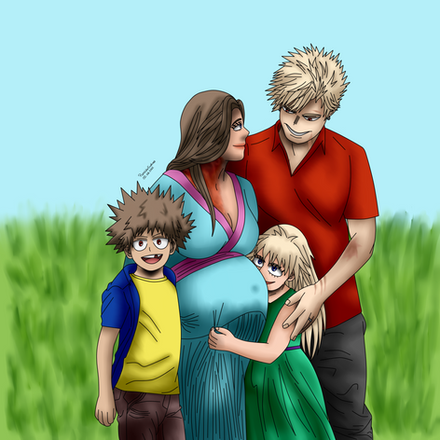 Commission forBakugou and Yuzu welcomes their newborn babygirl Fuyu into their lives, while their boys grinning happily at seeing their new baby sister!