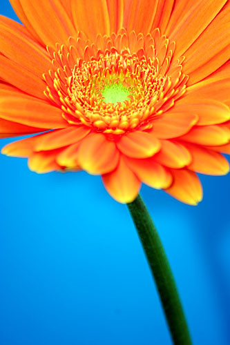 Tolle SchΓ€rfe, und die KomplementΓ€rfarben & die Schlichtheit des Fotos sind wirklich toll. Gerbera sind meine Lieblingsblumen