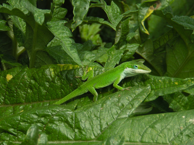 Picture of a green anole lizard at my parents house.Resized and cropped to my desktop resolution (1680x1050), original is 2816x2112.
