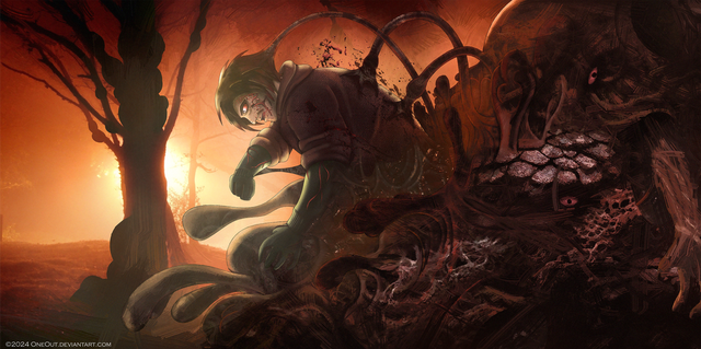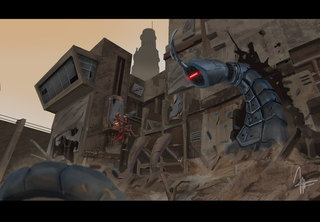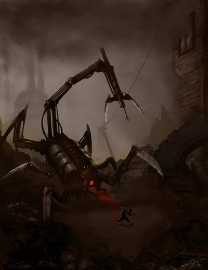 Amazing! I really like the texture of the floor, and the color palette is right for this scene! Amazing work with the monster!