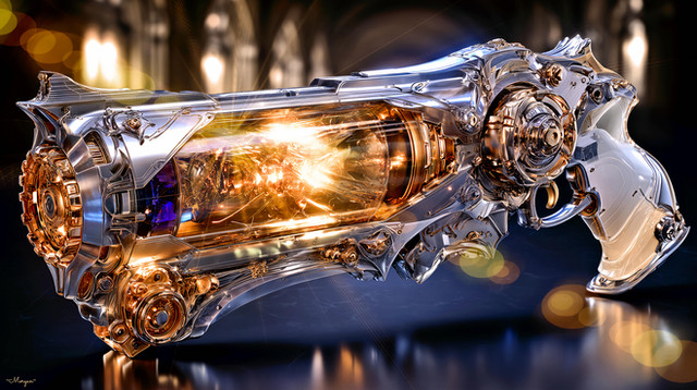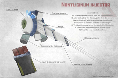 Church engineers, adopting this technology from sun children, adapted it to their needs. Now, for military needs on Inner Surface, where it is impossible to use electronics, a clockwork melee weapon is supplied. When the trigger is charged, the clockwork mechanism strikes the blade at any contact, splitting armor and tearing flesh, an exact hit with such a sword can break Needles to smithereens.