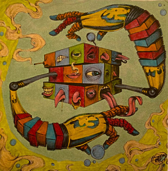 two of my favorite charactersthe front of my moleskine. unfortunately this stencil had a cost. jack frost, who is on the other side, got a little smudged after i accidentally got clear acrylic on him. also i started off by spraying the white layer grey instead. its been a bad afternoon. the white paint also came out too thick and had to recut a stencil.