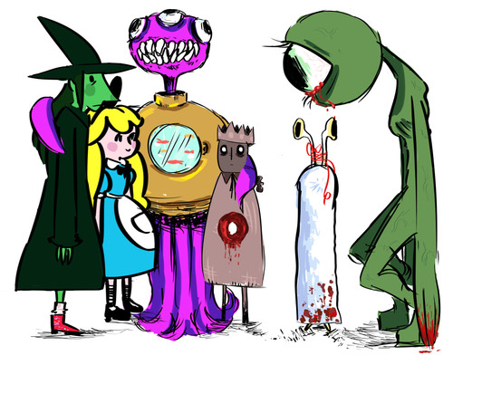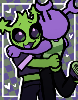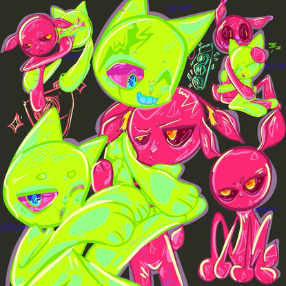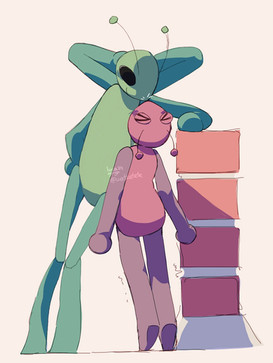 was busy with a first semester project that is due in one day, but got too unmotivated to continue so i drew something to refresh my head.the green and purple beings dont have a name so i always called them :{main color} human.
