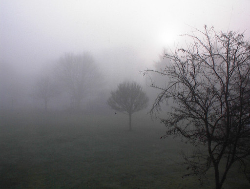Creepy, especially with the fog and that dark bare-branched tree. I love the contrast in colour at the bottom of the picture where the bright orange ground shines out through the fog. Very nice shot!