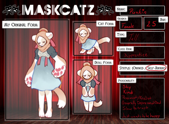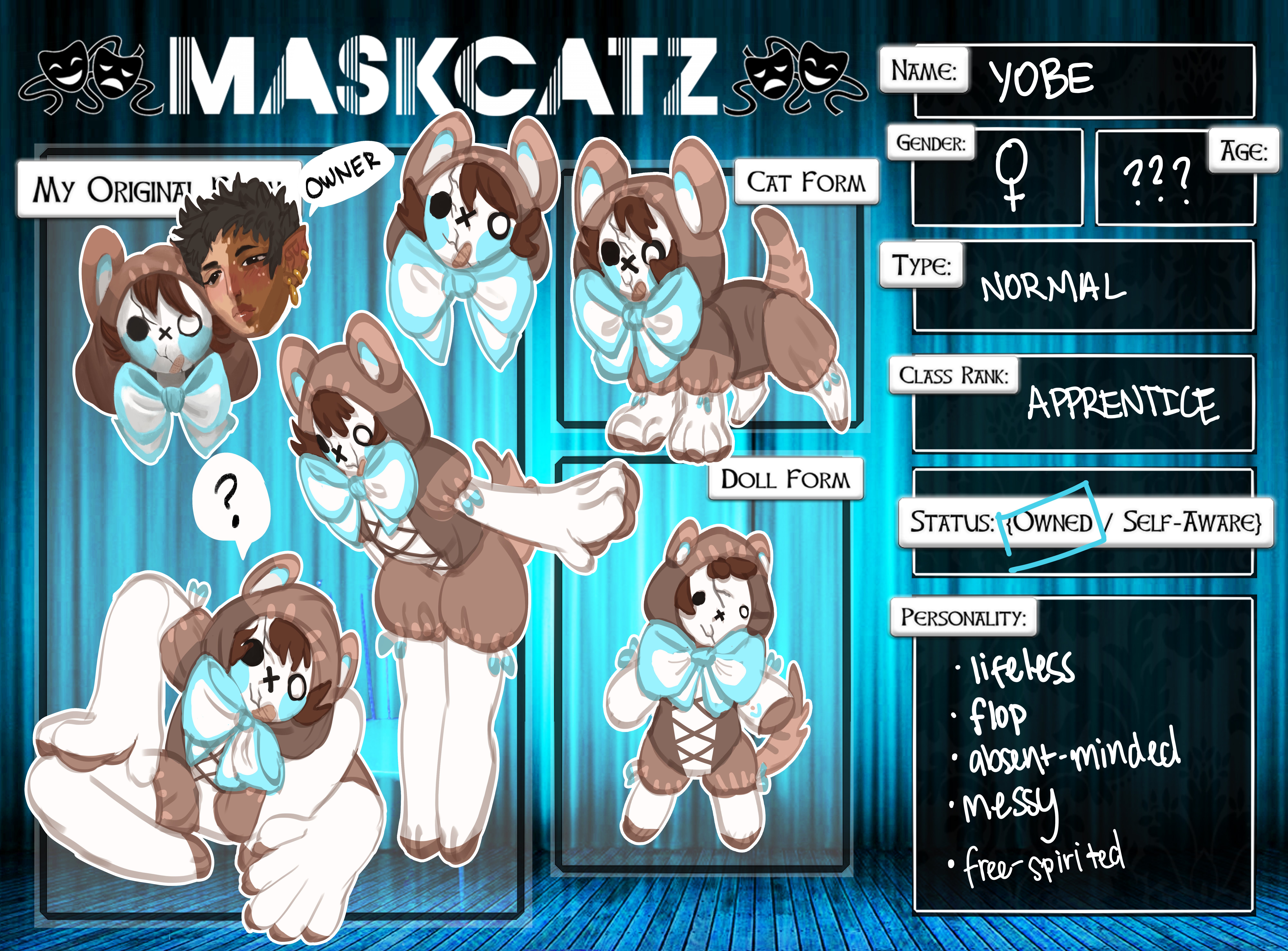 owned = the maskcatz have a master owner to obey n be with( some oc as the master of the maskcatz they take care of them n ect )