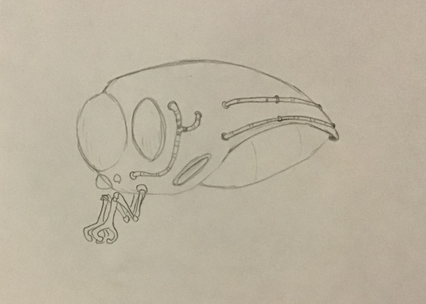 Most forms have a pair of eyes on the dorsal and ventral surface which can swivel when feeding. In the image above the main feeding apparatus can be seen below the dorsal eye, here in a substrate-sifting pelagic form, with its corresponding lingual appendage. The posterior jets are both primed, filled with water in case of a disturbance, in which both will be forcibly expelled of water, propelling the fish forward. They will then enter an alternating cycle in which one fills while the other ejects, providing constant movement through the water. The lateral fin provides stability while swimming and also while hovering, aided by several stabilizer jets which fold out with the mouth when not swimming.