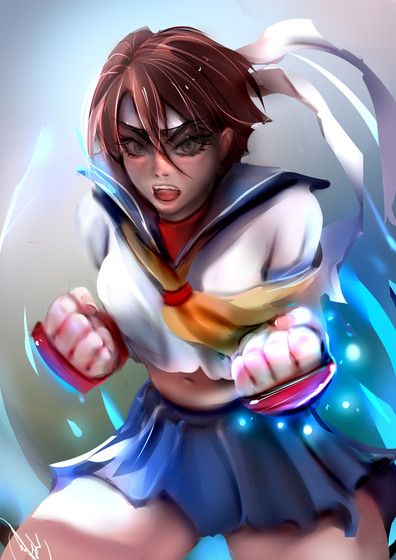 Gorgeous painting style. Every part of it is amazing, the colors are so vivid and pretty. I especially love the shading on her skin. Great work!