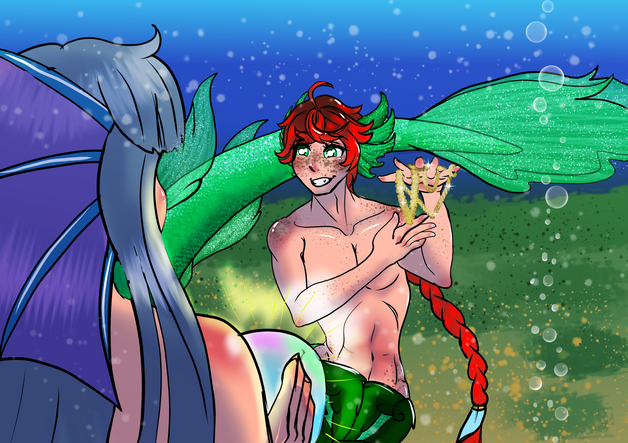 #boy #coloredsketch #crossover #fanart #lamento #mermaid #merman #onisu #razel #art