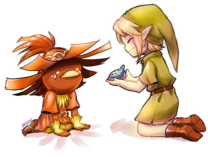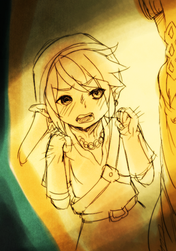 Haha, I loved this part in the game! It's actually visualised how small Link is in the game compared to almost anybody. So cute. Lovely drawing.