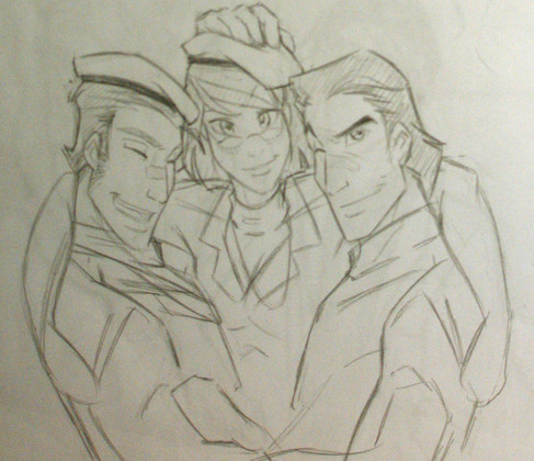 You know, I've really started to get sick of the Transformers-turned-human art. It's everywhere now. But your pictures I have yet to be tired of and I get excited every time I see you post a new doodle. Jazz and Steeplechase are SOOO adorable in this. And poor Prowl, he looks like he could use a back rub *cracks knuckles* Ooh la la.
