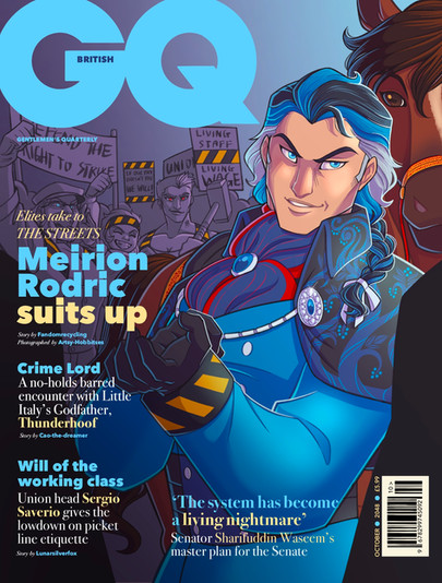 The third edition of printed media for Ties That Bind’s lore and timeline, featuring Jace Zayden (Jazz), Hanley Riordan (HotRod), Seth Wagner (Swerve) and Carina Morales (Chromia) gracing the cover of Rolling Stone! Stories inside feature Laila Badrolhisham (Lightbright) and Beauregard 'Beau' Laorou (Blurr)