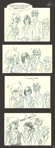 ...and Ronan? Is going to KEEL Wheedon. Gently, of course. And Percy... oh Percy. He's just desensitized. XD Ffff I love Daigoro. I want to see him and Shina sippin' tea, 'cause hey. They can.