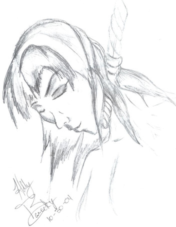 Again, it is Jacklyne. This I drew at 3am at my place of work. I'm not exactly sure what I was thinking after 3 sodas and 4 french vanilla cappacinos later... who would.For some reason in my state of wired depression I tried to conjure up what he may look like if he had metal wings. Maybe I'll make the pic for a chapter beginning.
