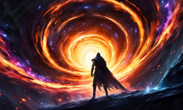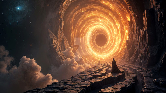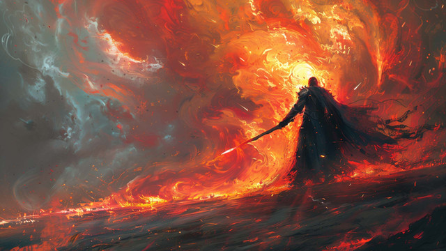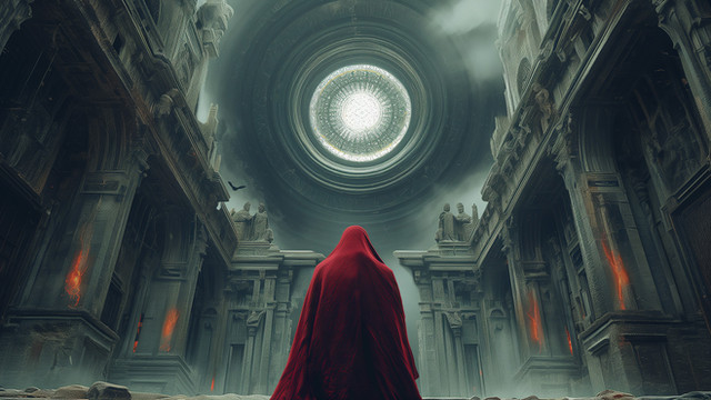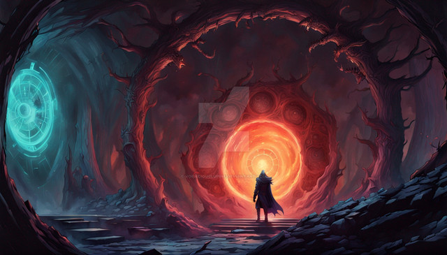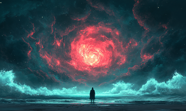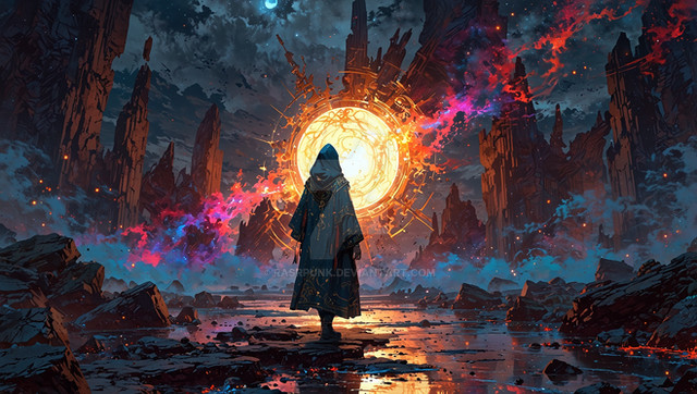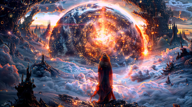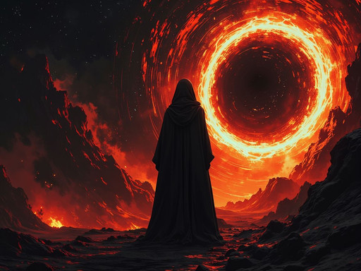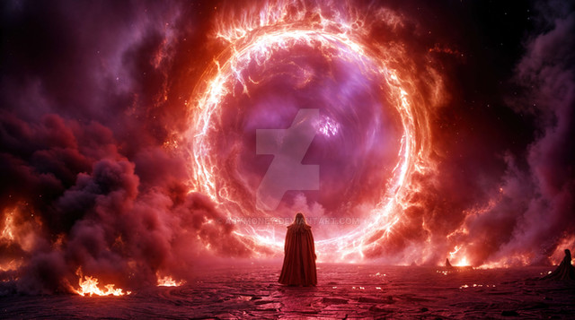 #apocalyptic #cataclysm #chaos #cloak #dark #destruction #dystopian #eerie #epic #fantasy #firestorm #glow #landscape #menacing #observer #power #red #sky #surreal #vortex