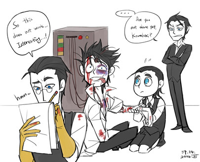 XD I love how you interpret them here with Kowalski reading the book upside down, Private breaking his Lunacorn~ showing the difference between the real penguins and the Androids so well~~ XP