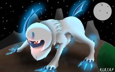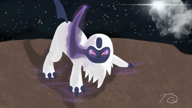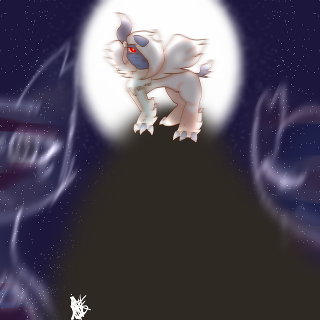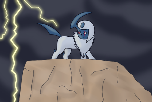 #absol #claws #cloudy #digitalart #eyes #fanart #glowing #glows #ground #lightning #paws #pokemon #ruby #shadow #sky #thunder #art