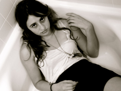 I had originally wanted to get some closeups for black and white with water running down (like on the stomach), but we don't have an actual shower, only a claw foot tub. So that's the story behind standing in a tub