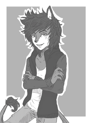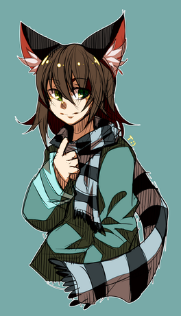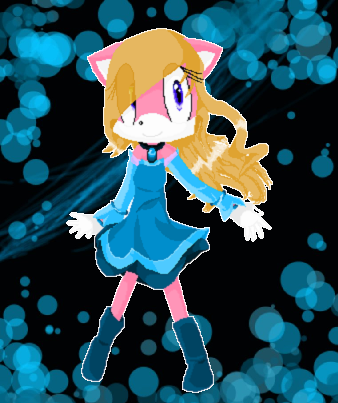 This is Daisy, my youngest oc. She's 11 or 12, I think. She's a scary lil girl xD if you've ever seen my characters Blade, this is his little adopted sister. Blade ran away and took her with him. They had bad new parents so she lives with him in his apartment >:U and nobody take that the wrong way lol.Daisy is really... Demanding? Idk lol. She knows what she wants and if you refuse she'll nag at you for hours but she's usually a really polite, funny talkative kid. Kammie is very find of her because if her innocence, but acts funny around Blade. I guess if I walked into some guys apartments and found a tall dude in dark clothing, platinum blonde hair and black eyes with weapons on the wall, I might be tense xD. The anime version of blade looks a million times better than the sonic version, because its old xD. Blue tiger guy. Spikey hair. Sleeveless black jacket (what's the point in that? xD it's like my pants with fake pockets for decoration lol). Daisy looks really similar to her anime version as a sonic chihuahua or whatever she is xD. Only she has cute freckles. Lol I'm gonna give a oc fake pockets one day...