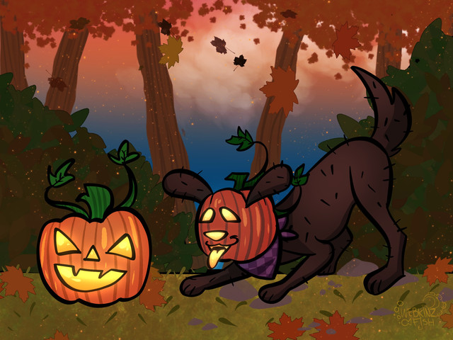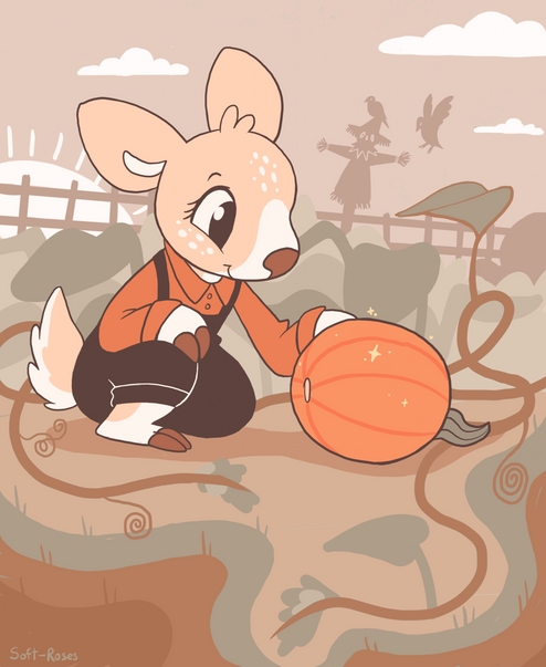#anthro #cartoon #cervine #costume #crows #deer #halloween #moon #night #oc #patch #pumpkin #pumpkins #scarecrow #scenery #toony #original_character #art