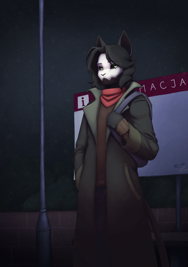 #anthro #background #coat #curb #dark #darkness #furry #grass #hat #lamppost #light #mysterious #night #noir #obscure #road #shadow #street #streetlamp #unknown #street_light #white_eyes #dramatic_lighting #glowing_eyes #trench_coat #funny_animal #light_pole #fedora_hat #sewer_drain #lamp_pole