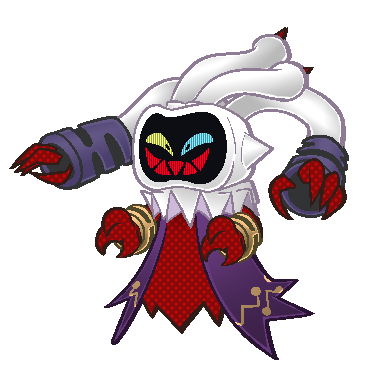 Its Special Moves consist of conjuring the dark flames of the firewall of its mother dimension to cause panic with illusions of death (Soul Burn), and bringing the powers of its foreign comrades through its cloak, being able to produce endless attacks (Magic Fabric).