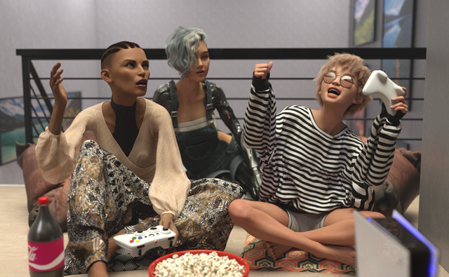 #digitalart #3d #render #daz3d #dazstudio #friends #gamers #gaming #group #hangout #mmf #originalcharacters #daz3dstudio #dazstudioiray #genesis8female #genesis8male