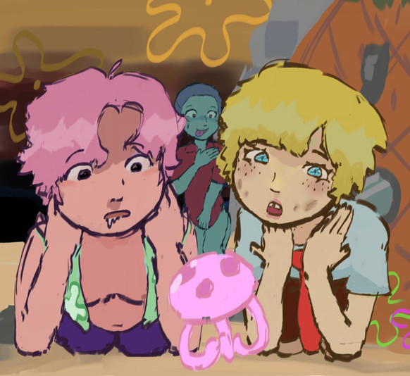 #digitalart #fanart #cutie #oldart #ship #songlyrics #spongebob #spongebobsquarepants #squidwardtentacles #squidwardxspongebob #sunnyday #spongebobsquarepantsfanart #basedonafanfic #bikinibot #softcolourpalette #beabadoobee #spongeling #whatstyleisthis