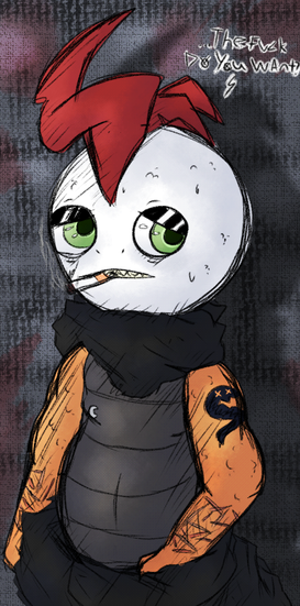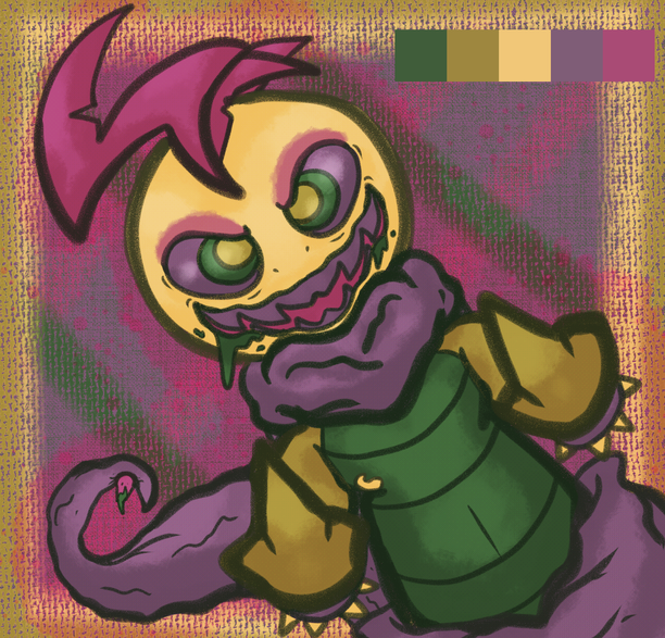 #digitalart #fanart #cartoon #originalcharacter #videogamefanart #black #fancharacter #green #grin #oc #originalcharacters #pokemon #purple #red #rude #white #scrafty