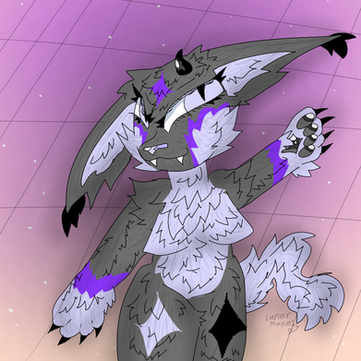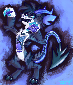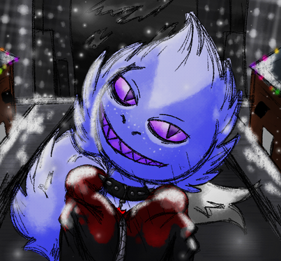 #fluffy #digitalart #originalcharacter #monster #black #blue #choker #creature #fullbody #fur #fuzzy #grin #hybrid #middlefinger #purple #rude #snow #white
