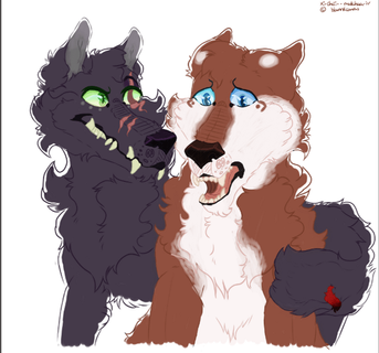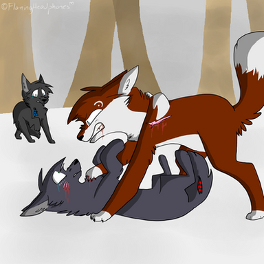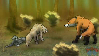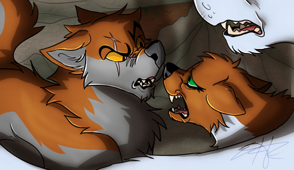 Two wolves enter the cave. Both with blood and feathers on their fur. Silver realizing what has happened knows what she needs to do. Silver bends down to her daughters ear.