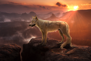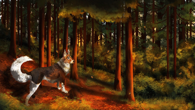 #digitalart #fawn #hike #orange #red #running #sunset #wolf #woods