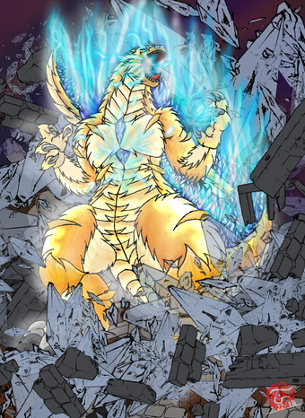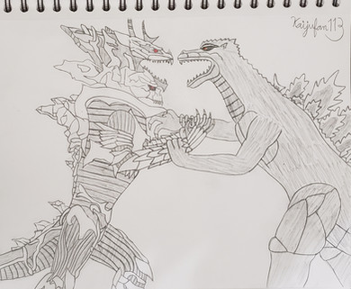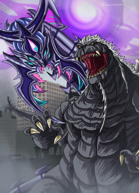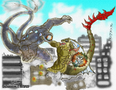 Alright, I decided I'd try coloring 's epic tribute to 's Godzilla Neo series. Super Godzilla vs Bagan, the battle to end all others. Took me a hell of a long time to get around to coloring it and then to actually color, but I think it was totally worth it.Original picture here: [link]