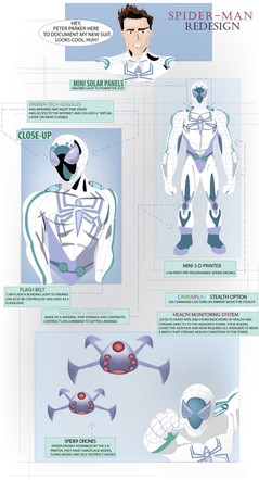 Definitely! This is is basically me being excited about Spider-Man again because in the comics, Spider-Man is finally using his brains and upgrading his tech. It inspired me to design a new Spider-Man costume that does exactly what you just said, show how smart Peter is. This is his big boy pants, not his pajamas.