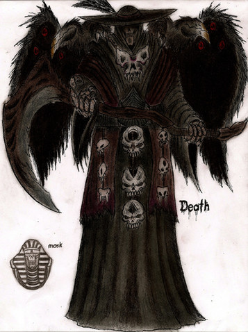 You totally -should- make that frock coat. I wouldn't mind seeing a stab at the whole set up. I was equally surprised by Death's color being pale green, the black cloak and scythe image is just so prevalent.